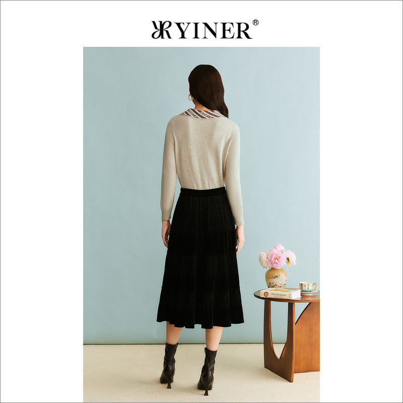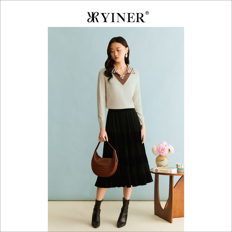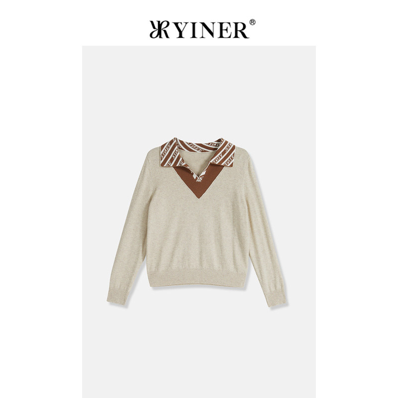 [裸感羊绒]YINER音儿专选女装冬季海鸥领针织衫套头
