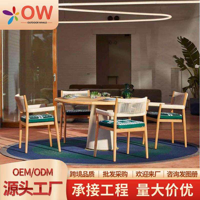 户外休闲桌椅柚木餐厅庭院露天防水防晒阳光房实木室外桌椅家具