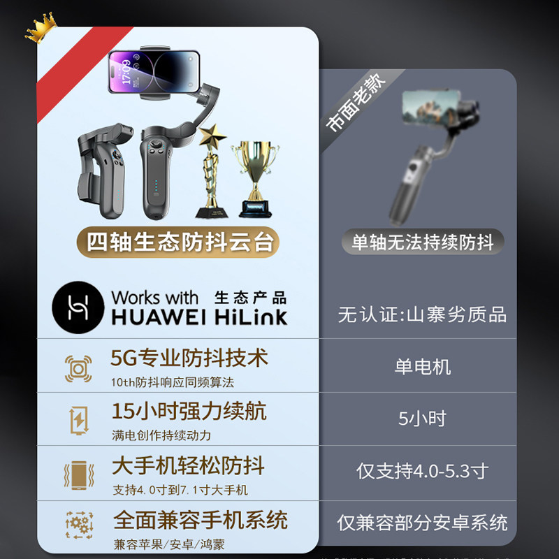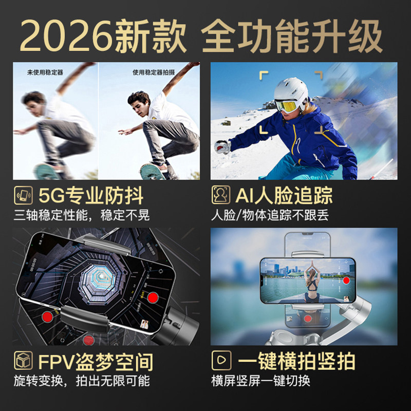 2026全球新款AI人脸追踪专业防抖手机稳定器手持云台摄影神器拍摄vlog平衡支架三轴自拍杆多功能直播设备支架