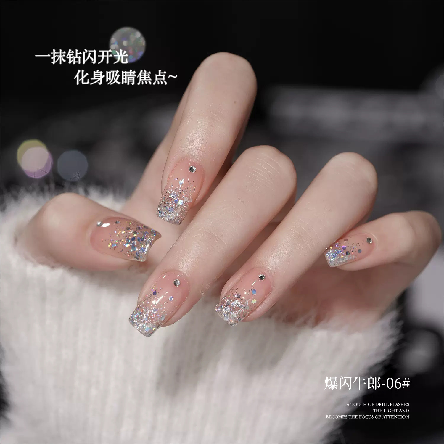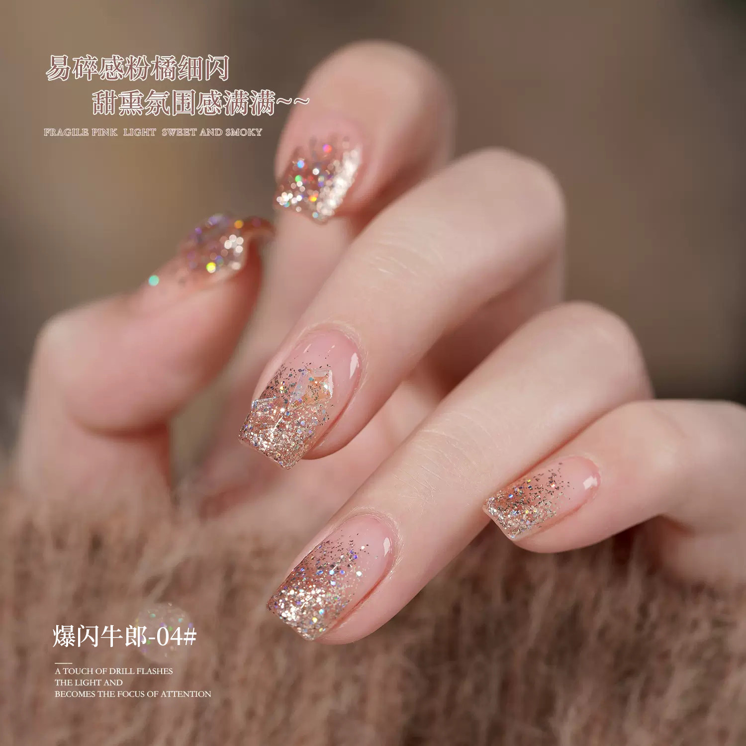 金色银色美甲铂金胶爆闪甲油胶彩绘胶美甲店专用亮片光疗持久细闪