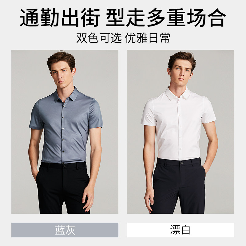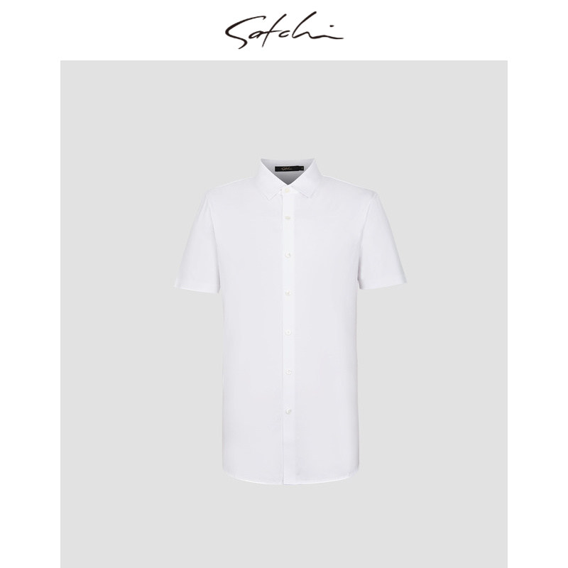 [弹力棉]SATCHI沙驰男装男士短袖衬衫夏季新款商务高端白色衬衣男