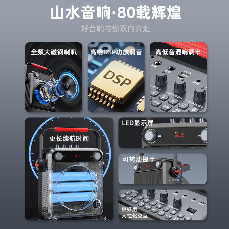山水新款广场舞音响便携户外声卡k歌重低音炮无线蓝牙大音量音箱