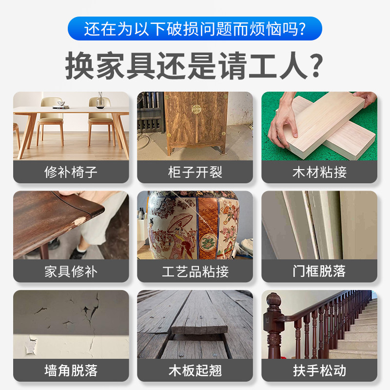 粘木头专用胶粘得牢家具红木木材开裂修复填充实木木板椅子凳子桌子门边木地板白乳胶粘合剂快干木工强力胶水