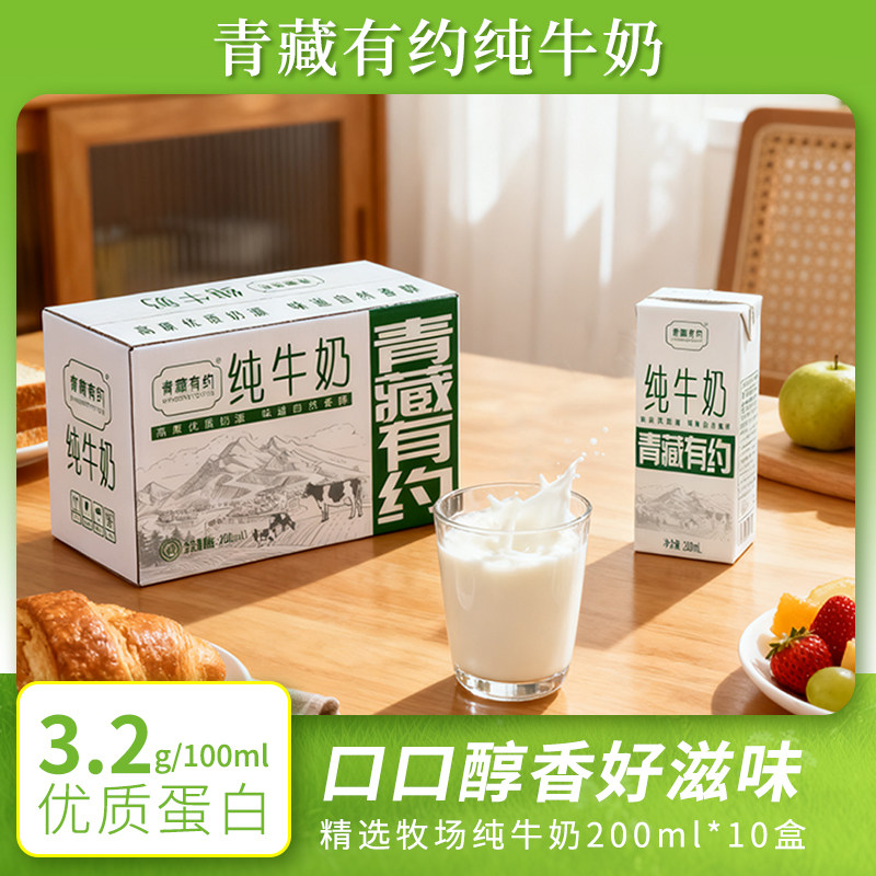 格宁垦牧场纯牛奶200ml*10盒3.2g皆宜青藏精选有约国货全脂盒装
