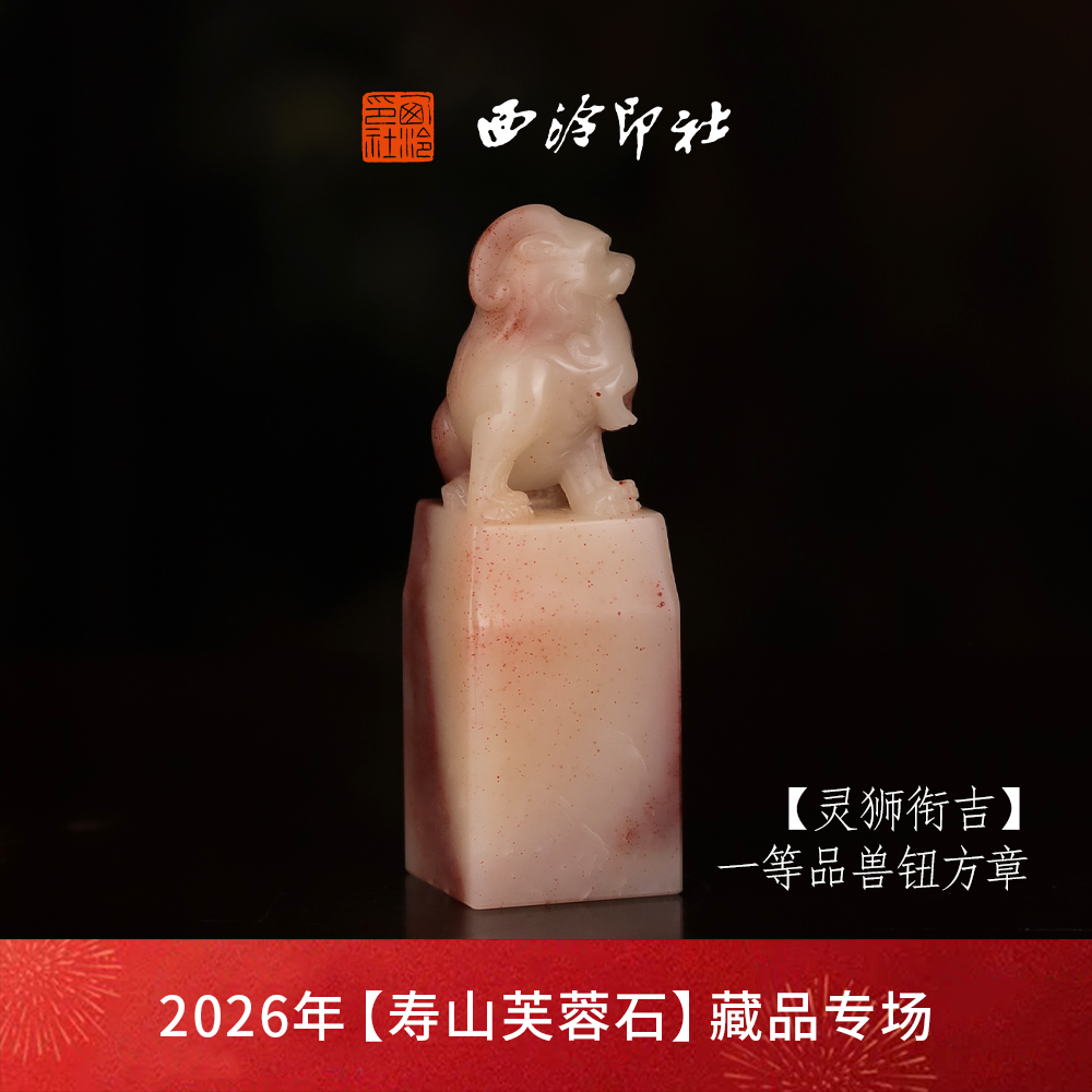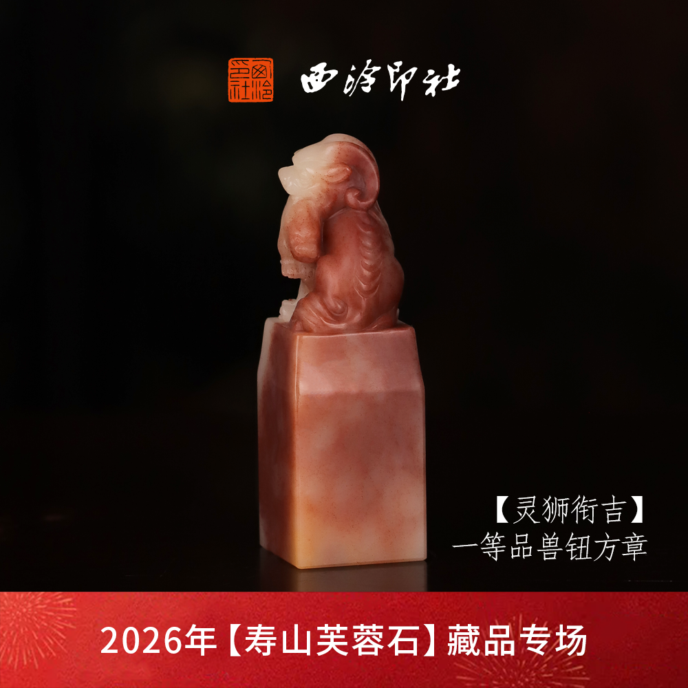 【一等品】西泠印社寿山芙蓉石兽钮方章《灵狮衔吉》高档石材印章书法国画手工篆刻玉石方章定制落款孤品章