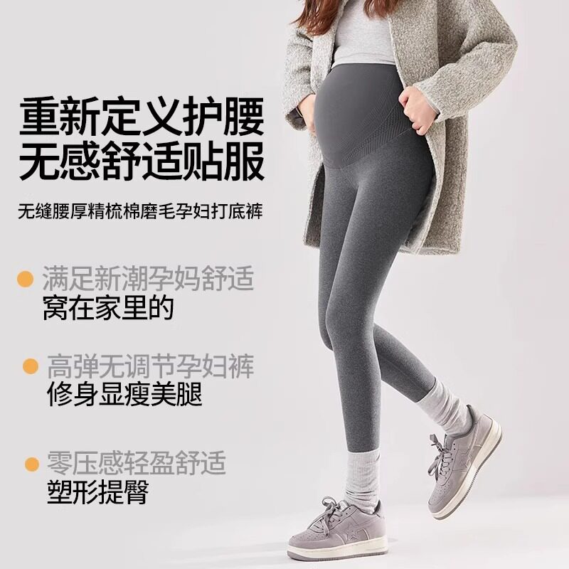 婧麒孕妇加绒打底裤冬外穿不勒肚子加厚托腹长裤孕期加厚保暖裤子