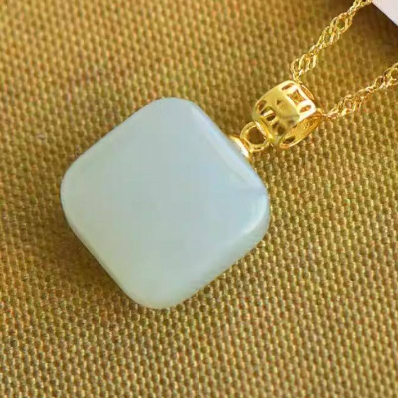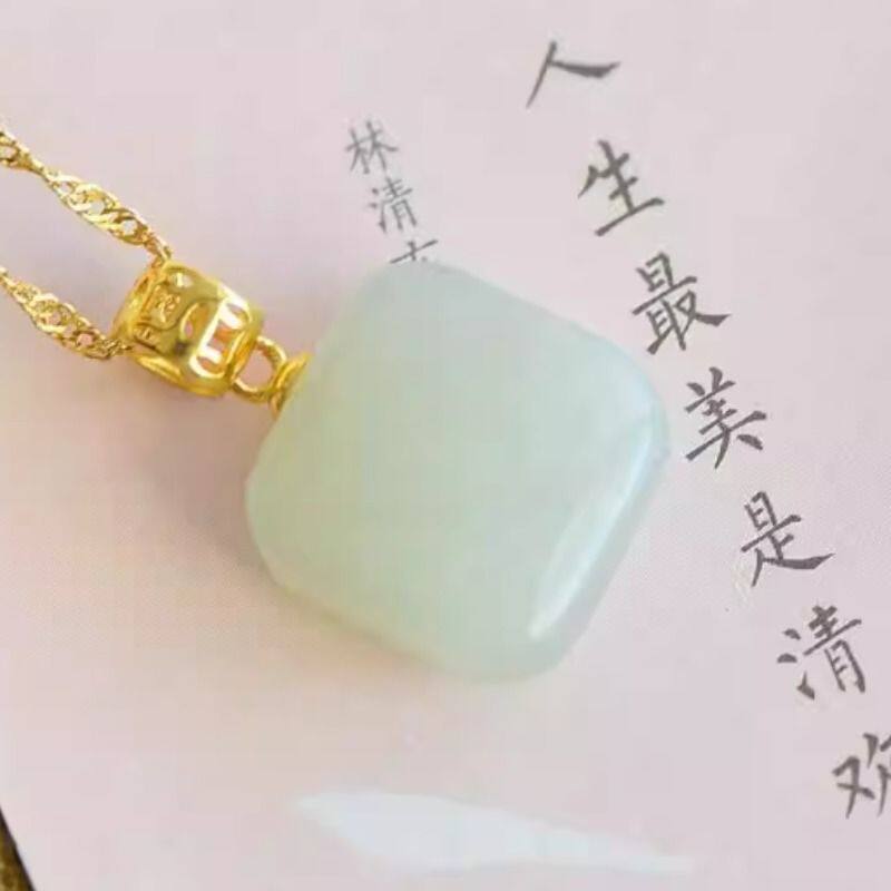 和田玉925银镶白玉项链吊坠送妈妈女友礼物国风精致玉石锁骨链坠