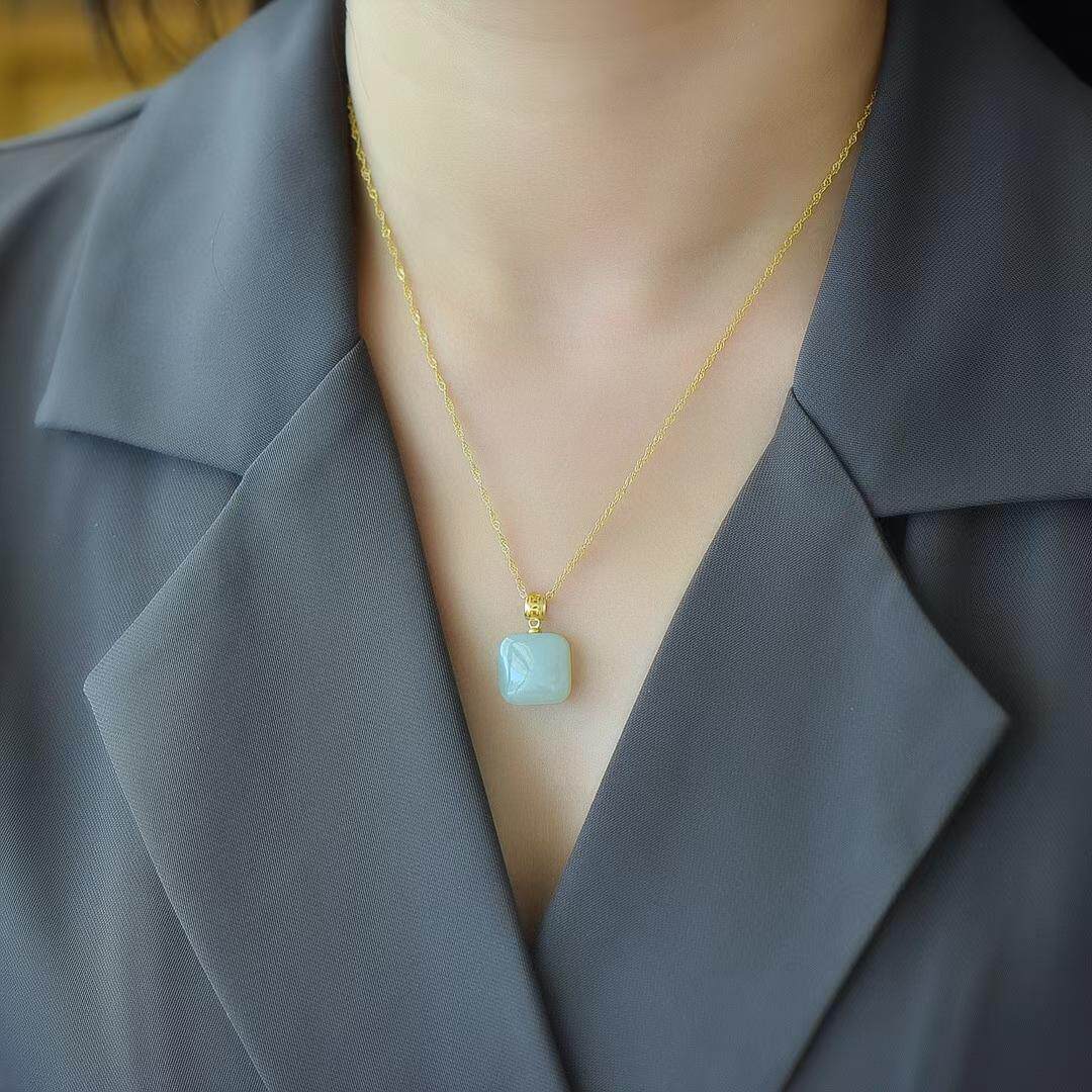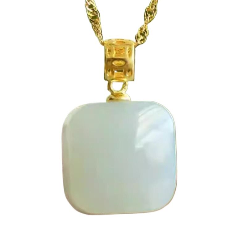 AmberLollipop天然白贝母项链女方形吊坠锁骨链小众颈链百搭配饰