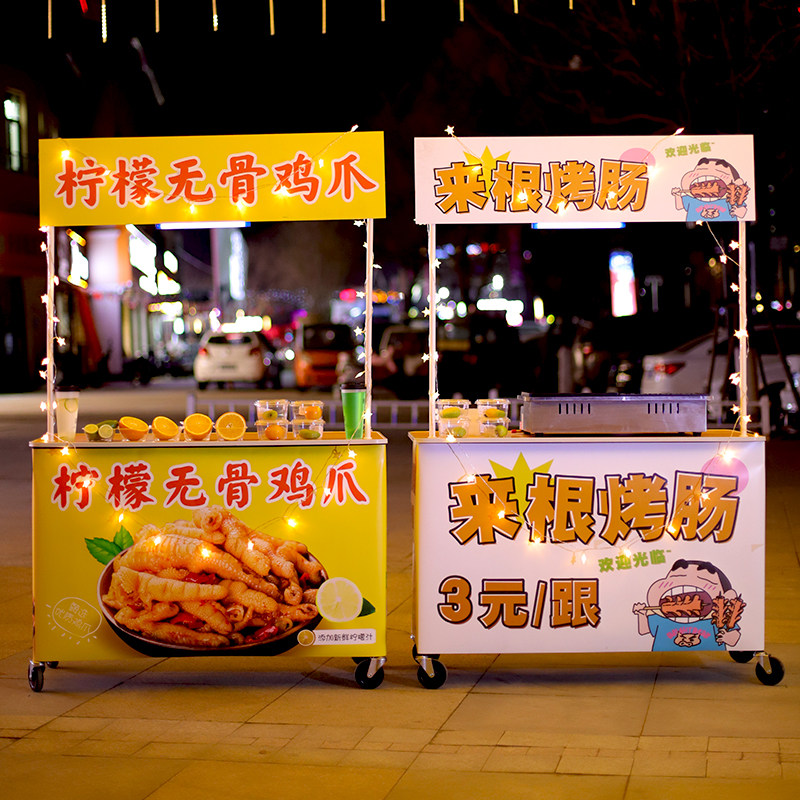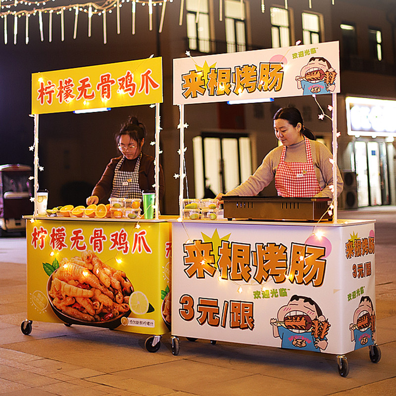 夜市烤肠出摊摆摊小推车可折叠桌子路边流动促销小吃地摊专用手推