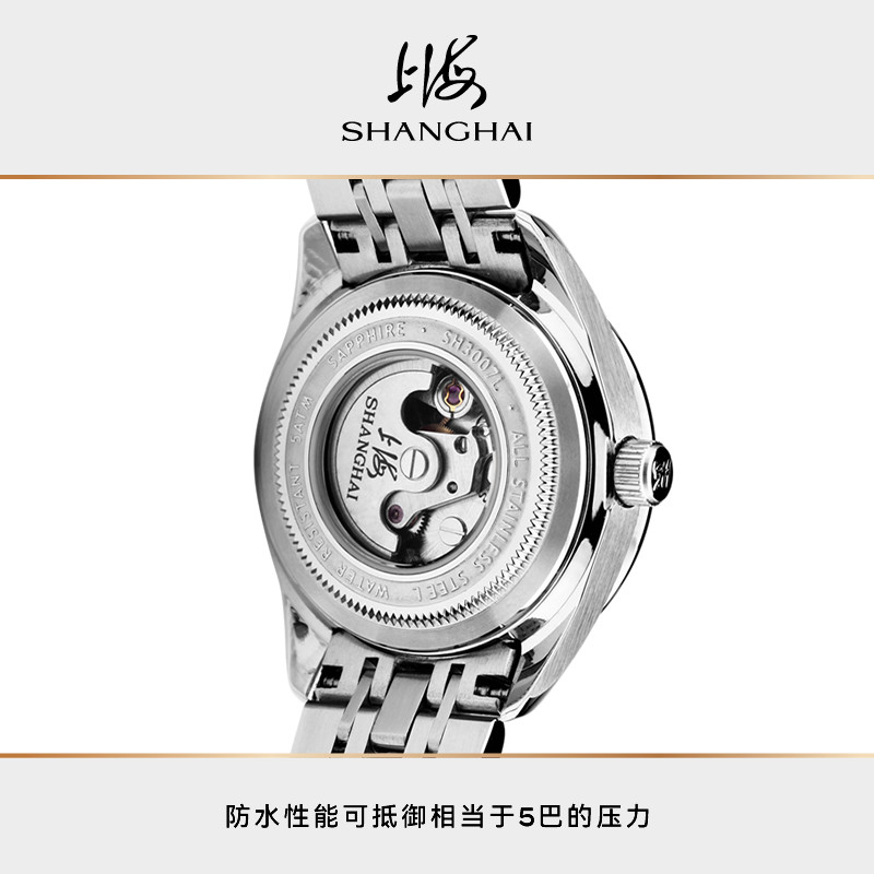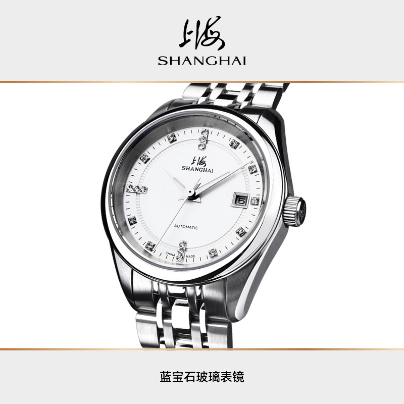 上海手表女款国民系列镶钻时尚简约钢带机械表3007