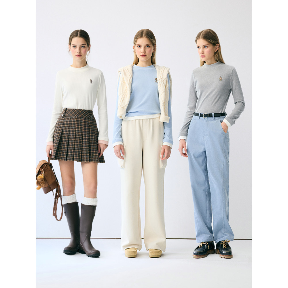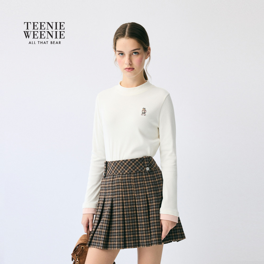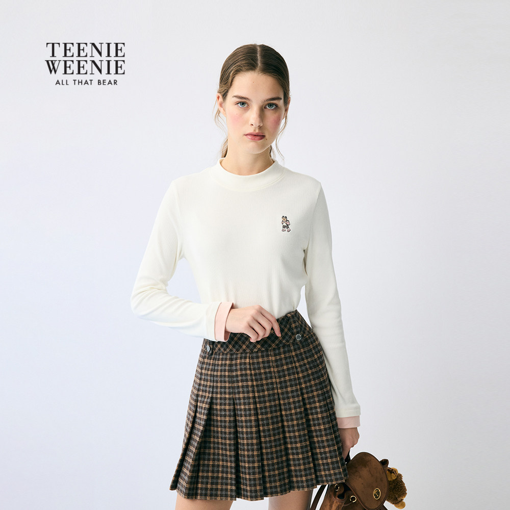 TeenieWeenie小熊女装长袖T恤冬季新俏皮弹力拉绒竖纹打底衫上衣