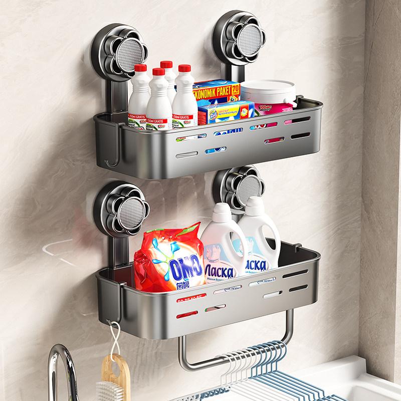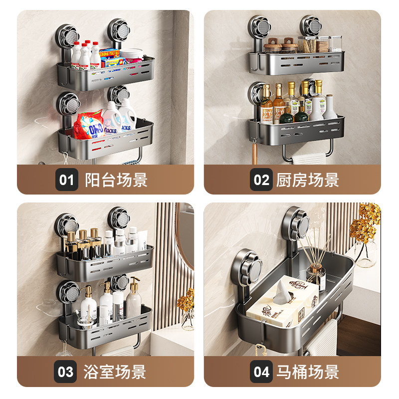 吸盘置物架厨房浴室卫生间免打孔壁挂式墙上收纳神器洗漱台收纳盒