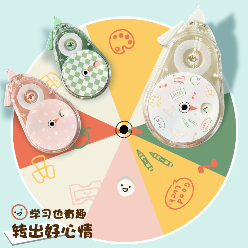 晨光官方好好学习好好玩转转修改带转盘修正带初中生改错带大容量涂改带静音小学生女生静音改正带小学生文具