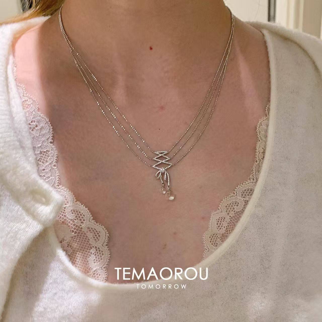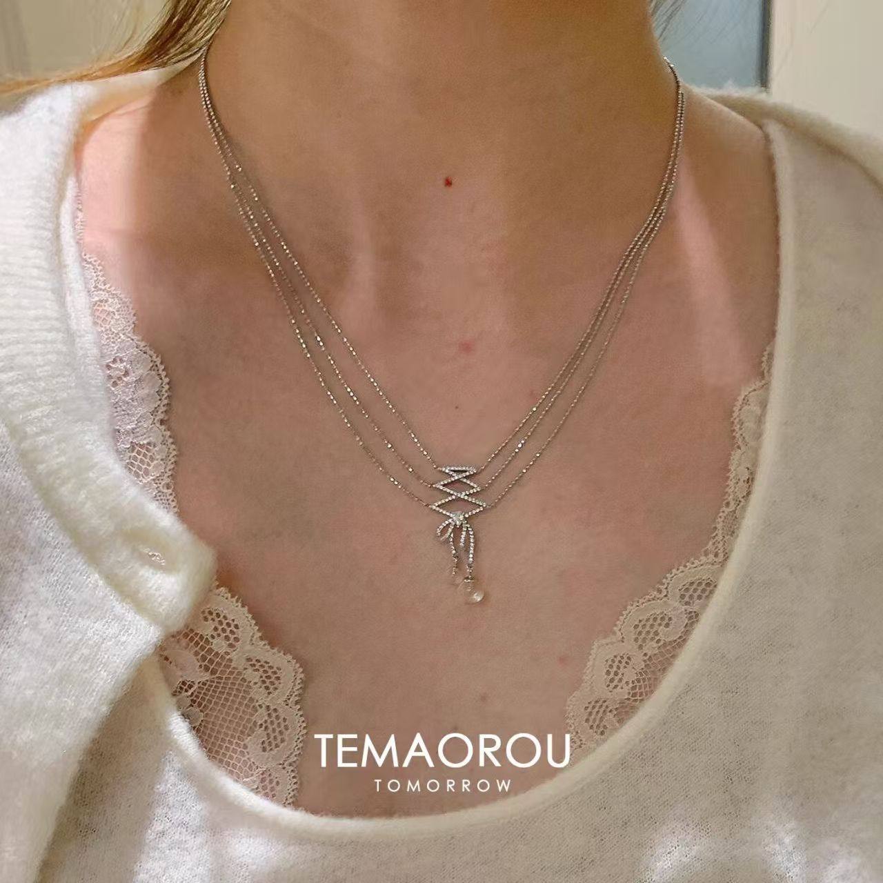 美晕了!甜美"颈间芭蕾"蕾丝带白水滴吊坠项链小众设计精致锁骨链