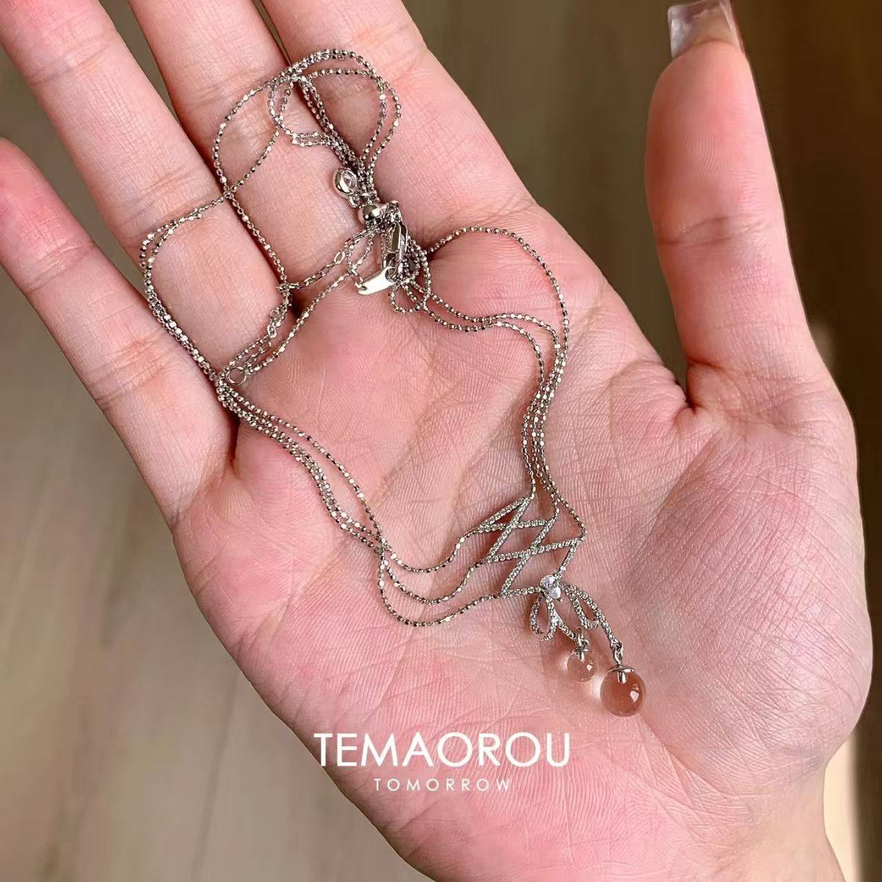 周大生流苏蝴蝶结纯银项链女S925锁骨链小众设计感送女友生日礼物
