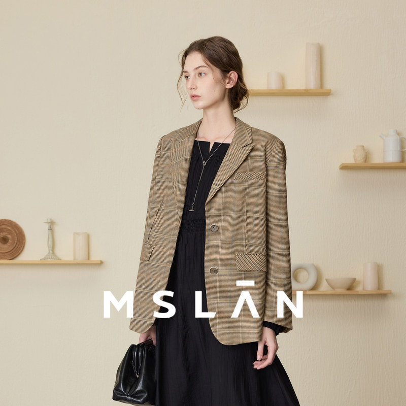 【质感格纹】MSLAN春季优雅西装外套女长袖时尚上衣MEAA2506