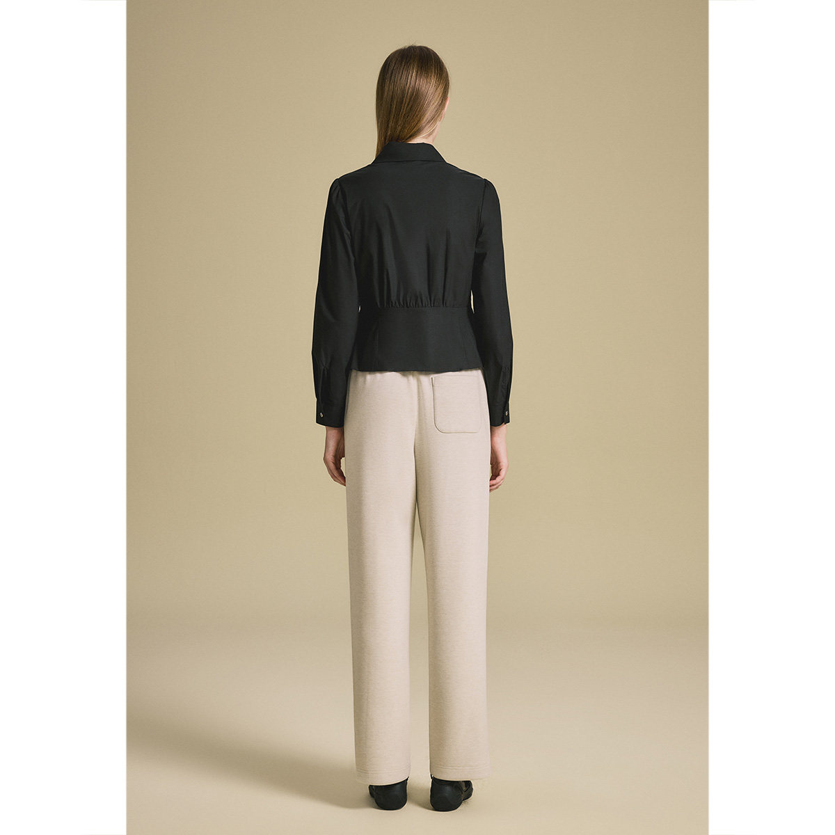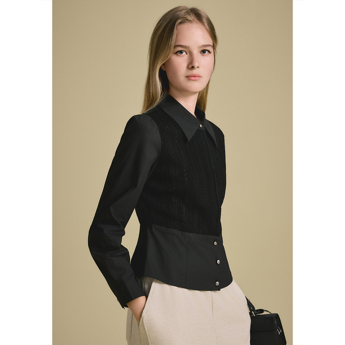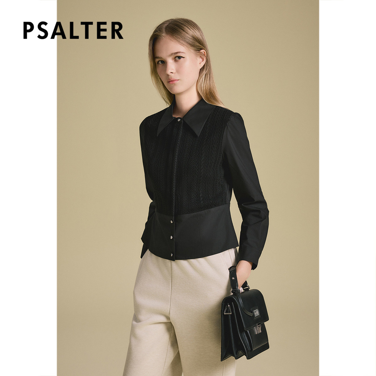诗篇专选针梭拼接泡泡袖收腰修身衬衫女2025秋款