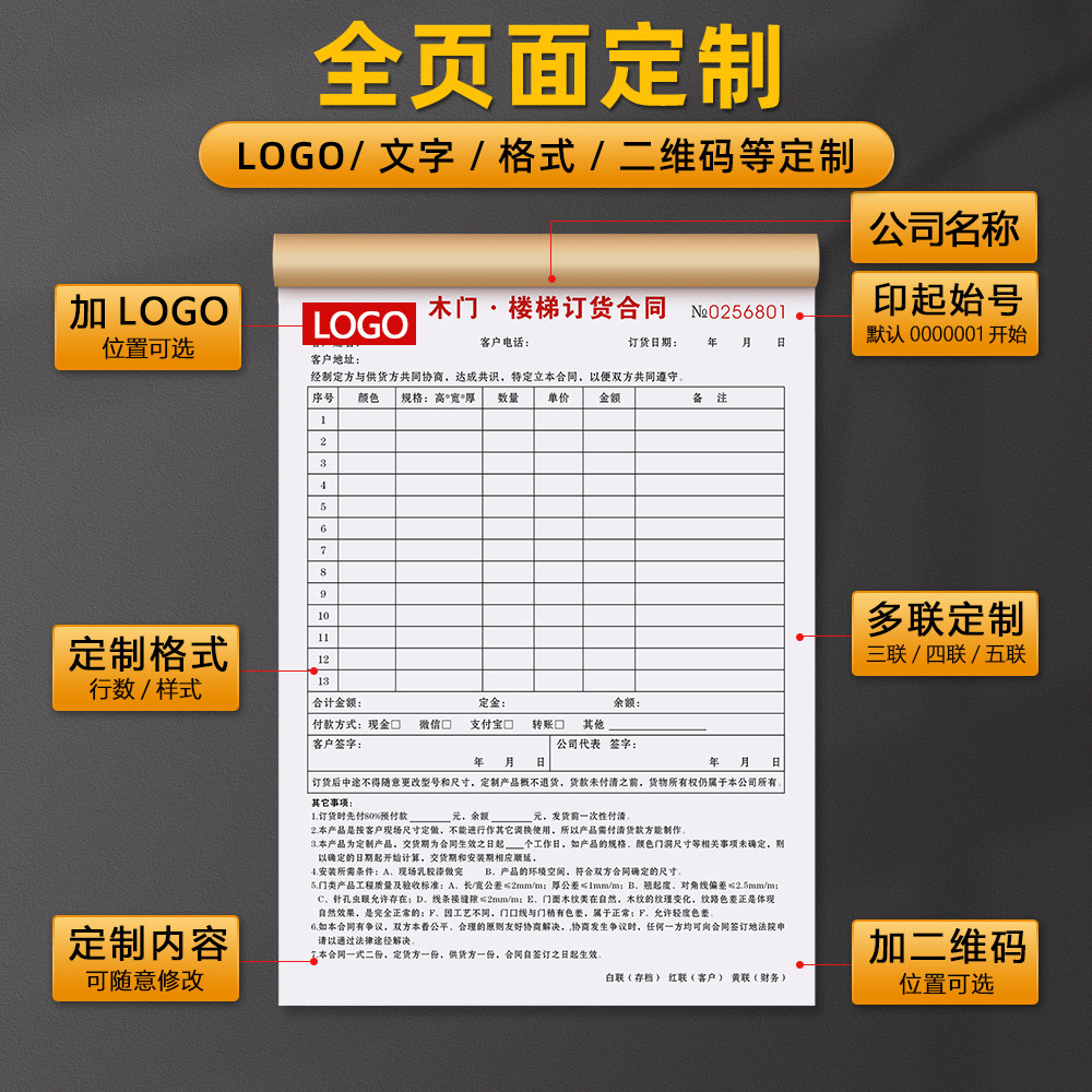 【家装楼梯木门专用】订单本定制扶手销售订货合同测量安装报价单