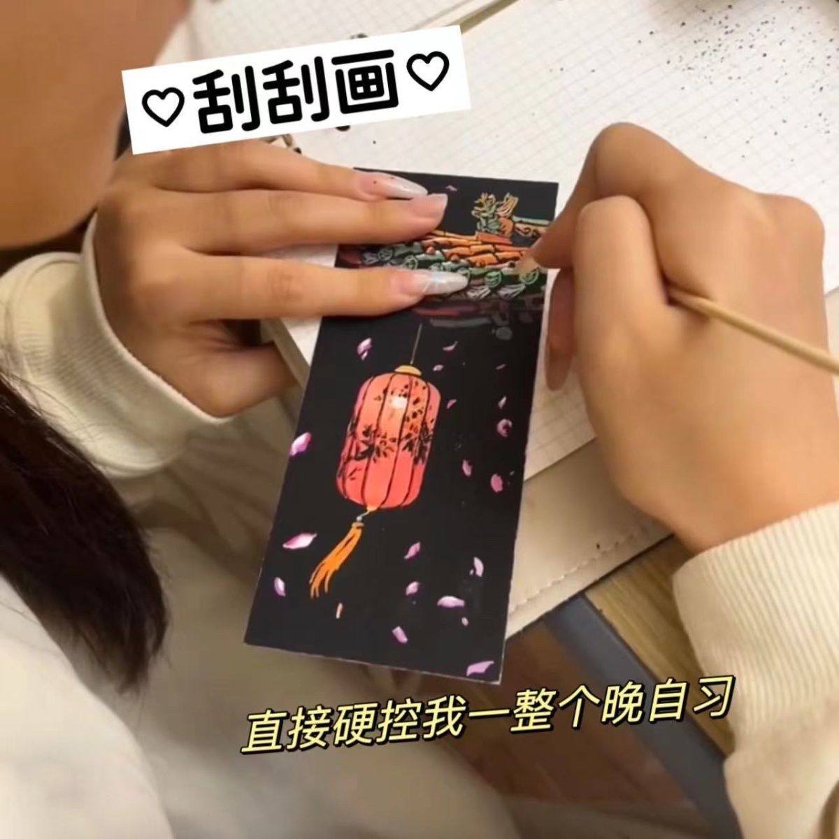 夜景刮刮画炫彩都市创意城堡刮刮纸成人女大学生解压画艺术刮画纸