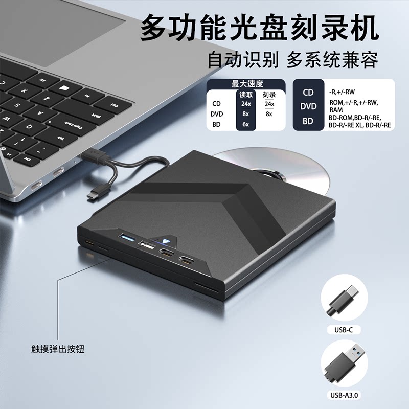 3.0外置移动USB多功能光驱DVD BD蓝光七合一刻录机TYPE-C外接