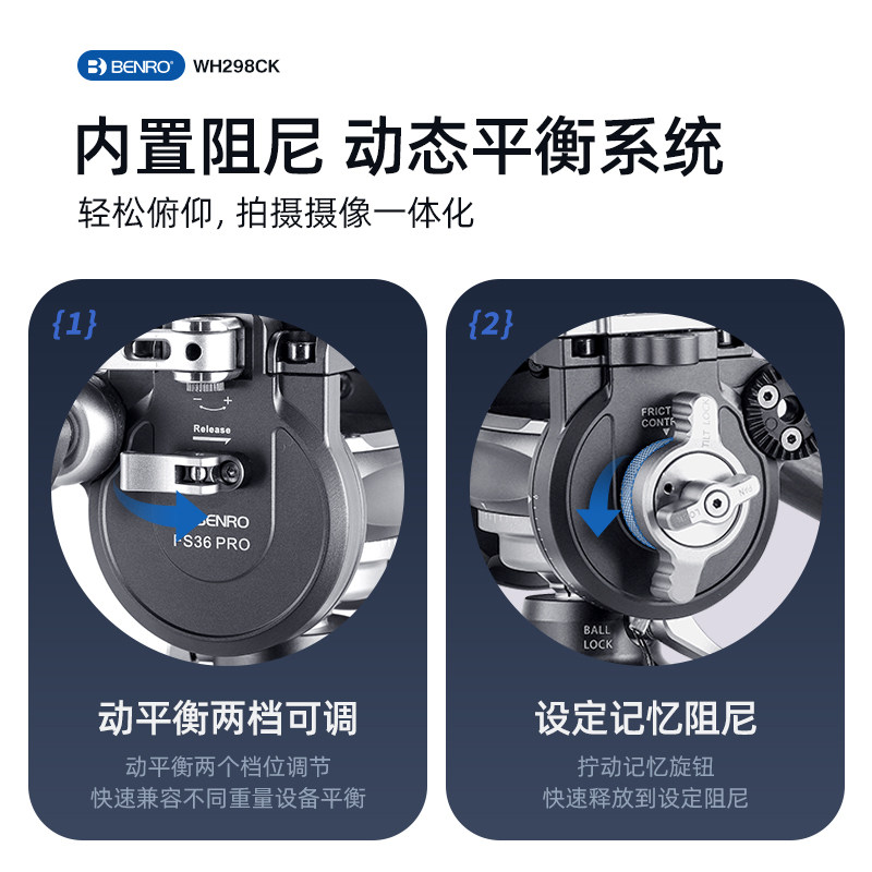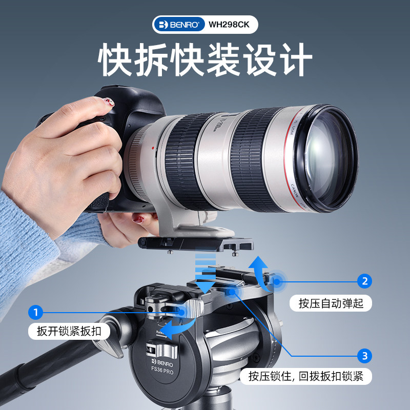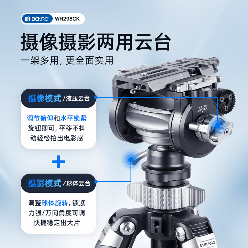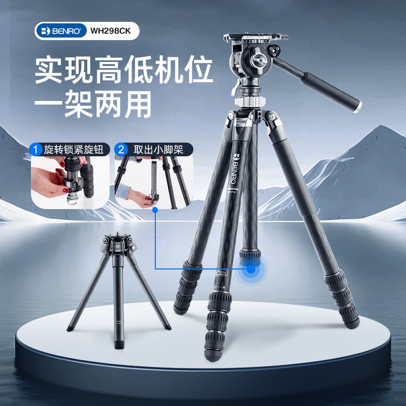 百诺BENRO战锤WH298CK碳纤维三脚架摄影摄像三角架动态平衡快装快拆子母大小两用高低机位独脚架专业外拍支架
