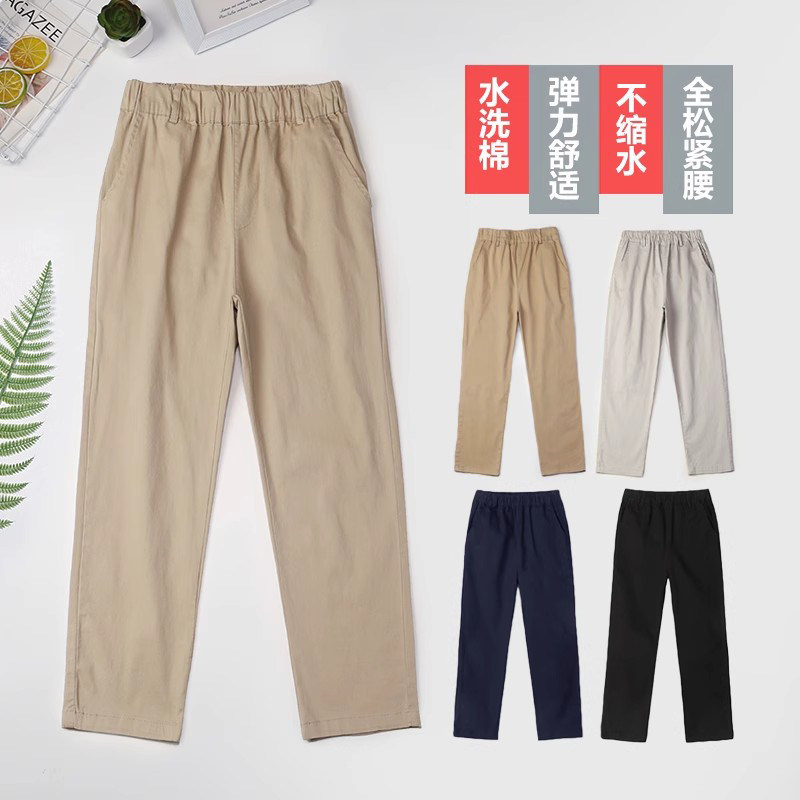 罗蒙儿童卡其色校园服裤子男童松紧西裤小学生加绒女童藏青运动裤