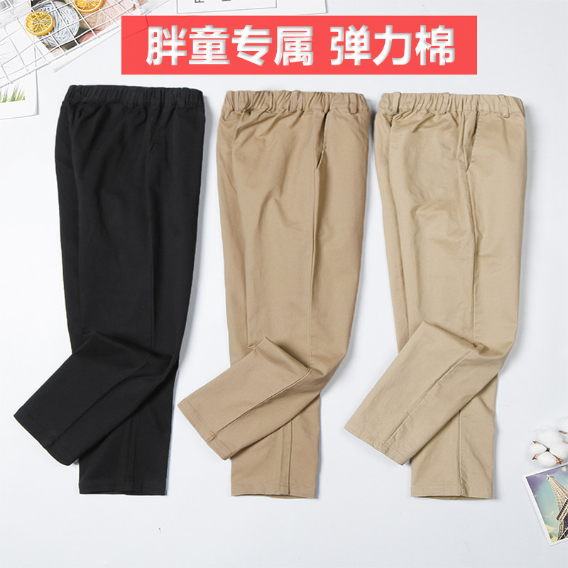 男童卡其色裤子加绒儿童米色胖女童休闲长裤小学生校服裤藏青西裤