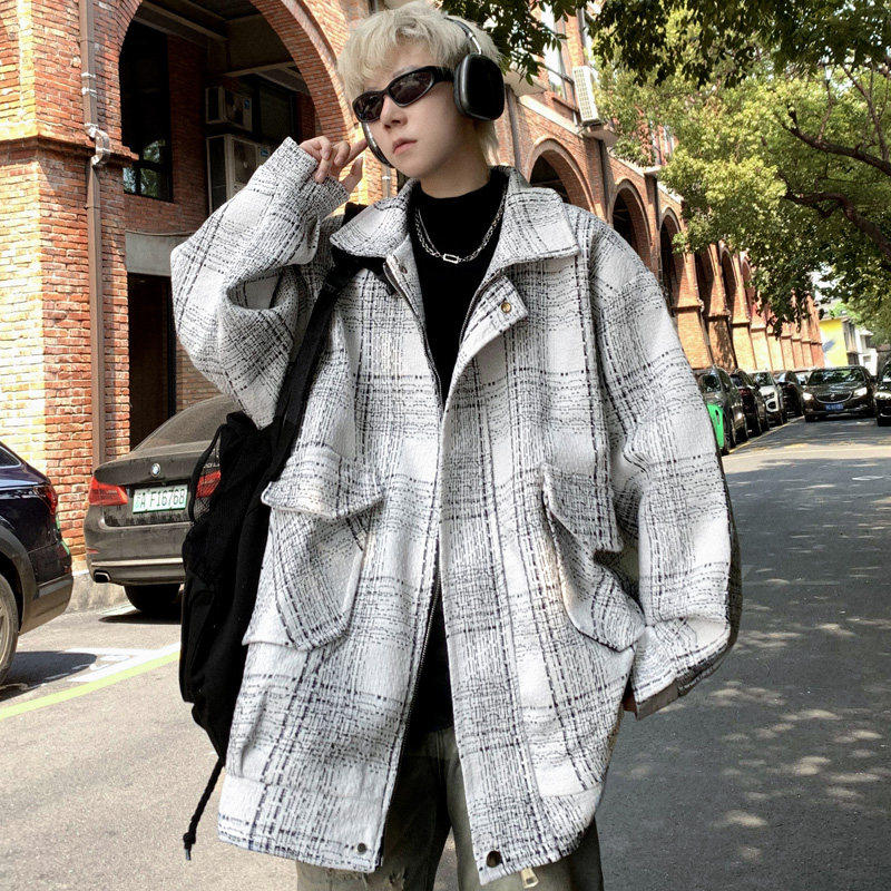 诗丹帝国小香风格子外套男春秋款2024新款秋冬高级感毛呢大衣潮牌