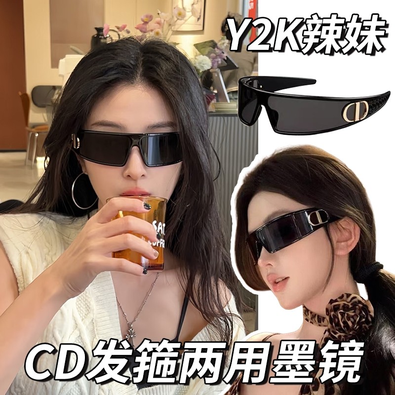 Y2K猫眼发箍墨镜女高级感gm新款Jennie防晒太阳镜偏光徒步好物