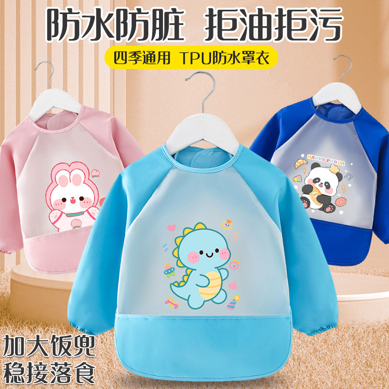 宝宝吃饭围兜兜罩衣防水防脏儿童男女F孩围兜口水巾四季辅食熊猫