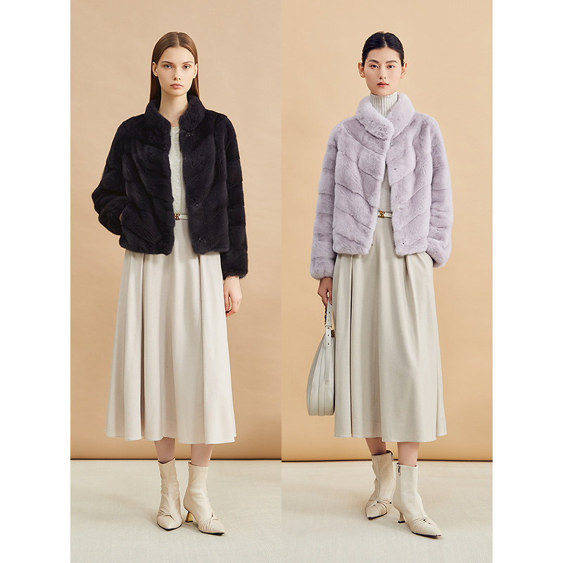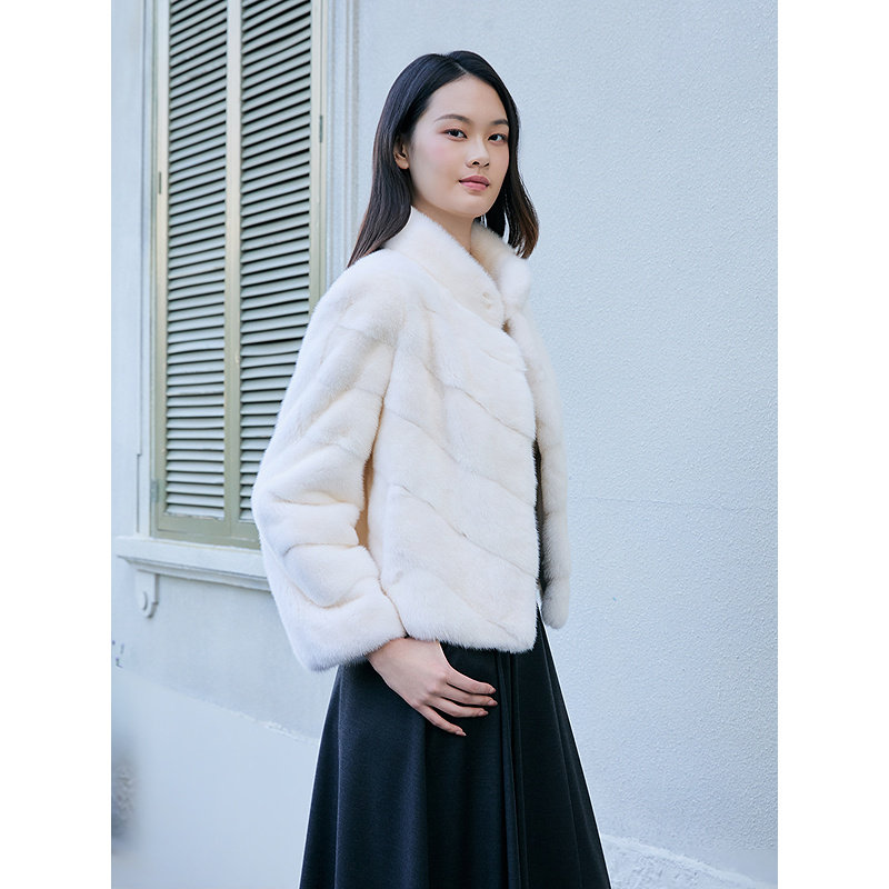 YINER音儿专选女装冬季优雅奢感短款保暖立领水貂毛皮草外套