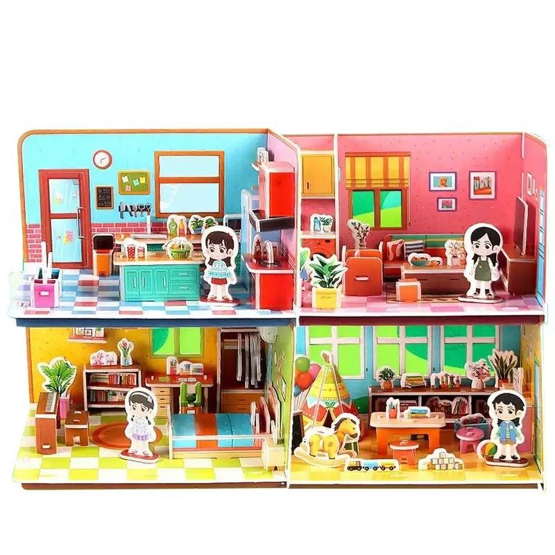 儿童3d立体拼图3到6岁上房子积木拼图女孩3diy手工小屋子益智玩具