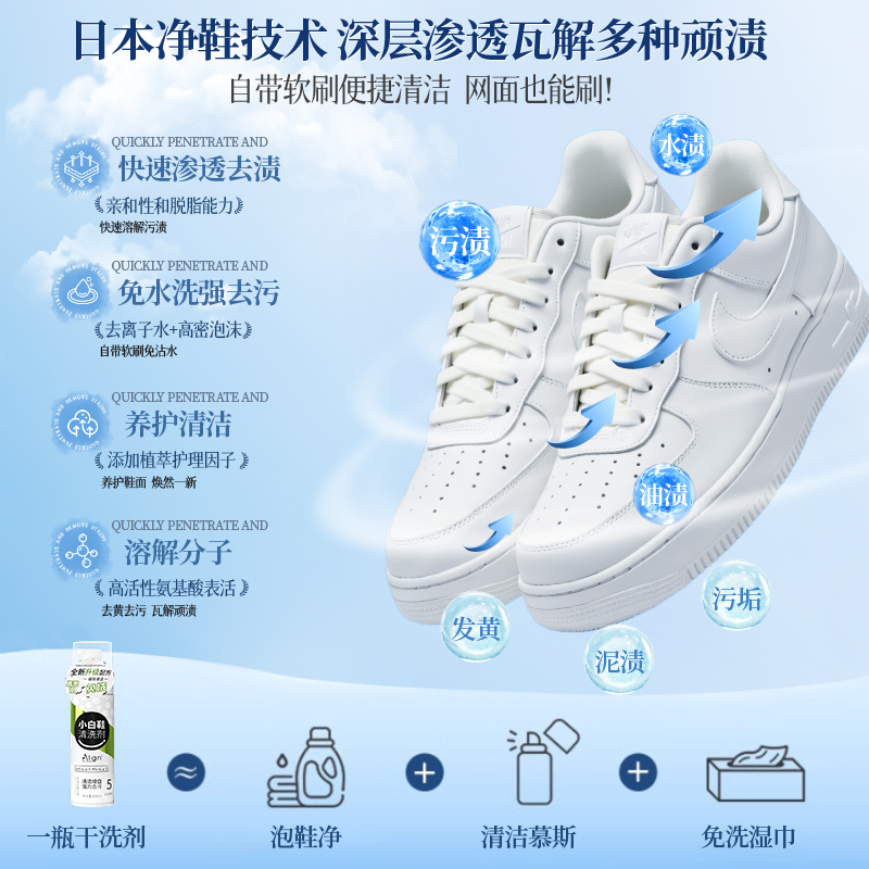 优洁士小白鞋清洁剂洗刷球网鞋去污去黄增白清洗神器免水洗干洗剂