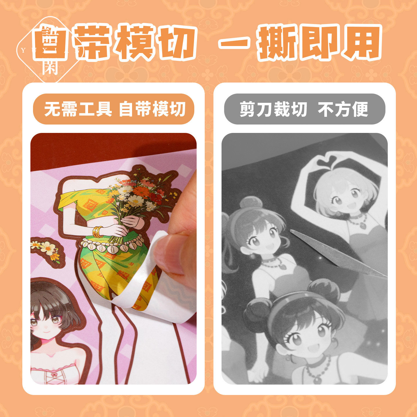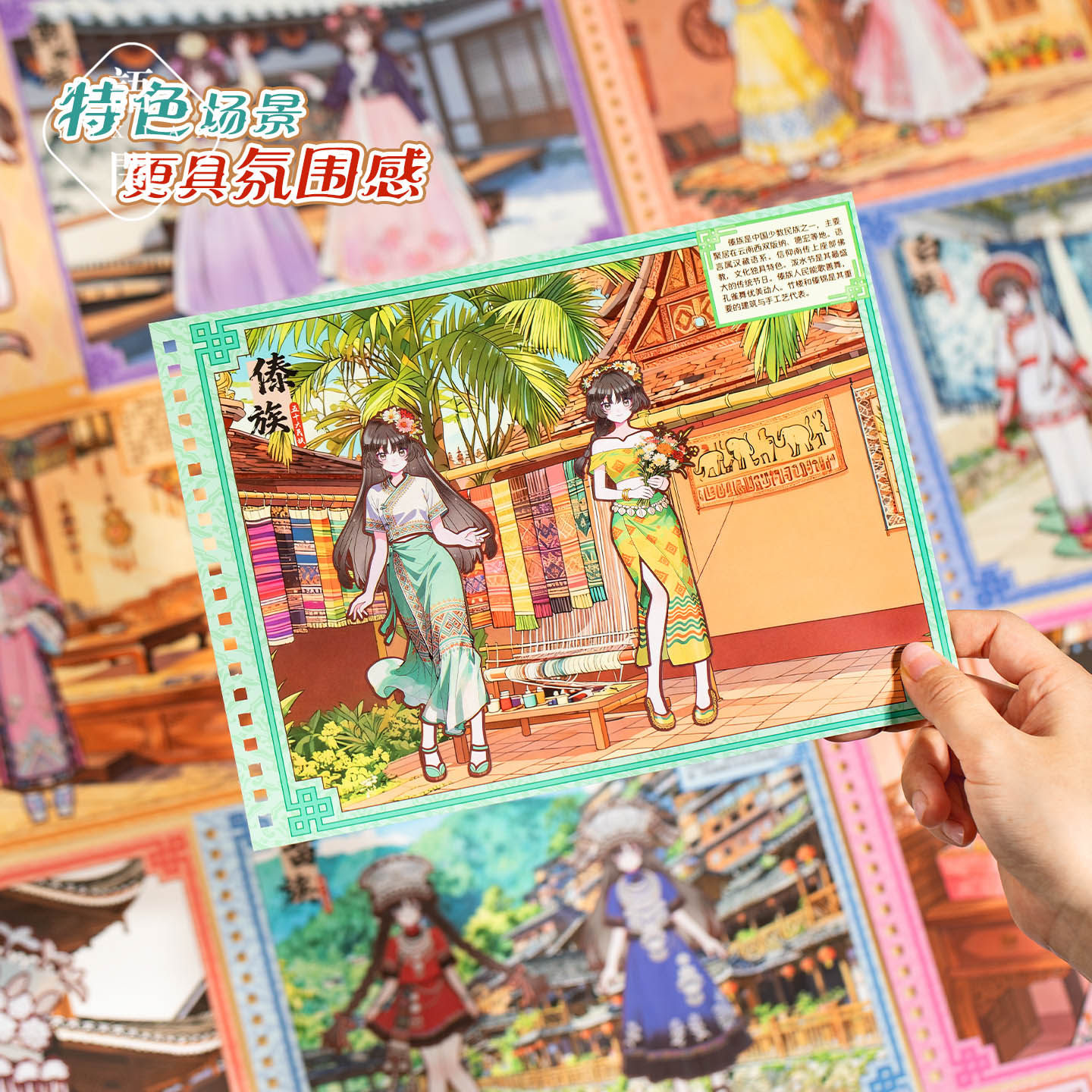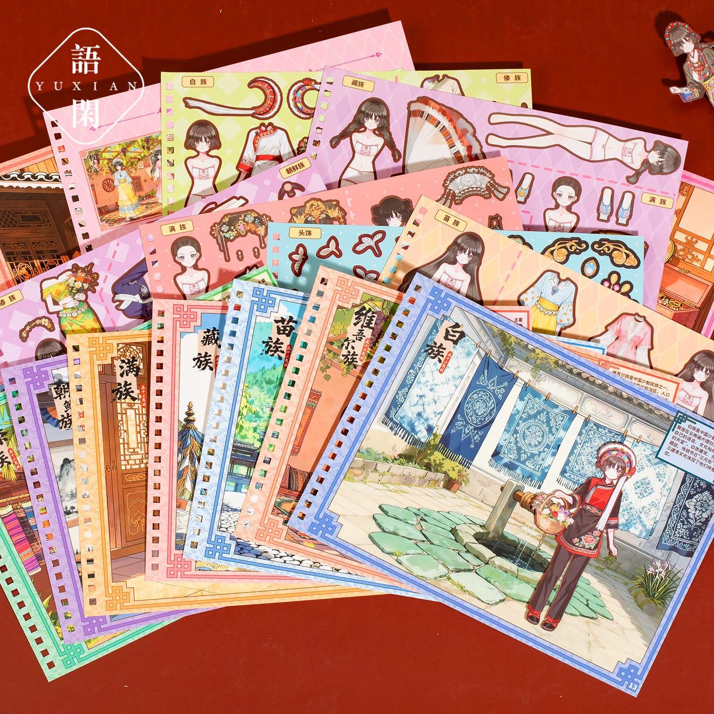 语闲民族服饰少女换装贴纸合集本1.0造景贴纸儿童玩具女孩生日礼物中国风微缩场景3D立体小屋贴画手帐diy手工