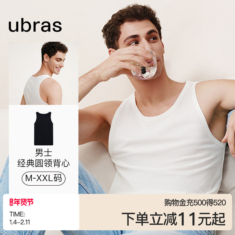ubras无痕男士背心纯棉全棉透气T恤老年人背心老头汗衫抗菌防螨