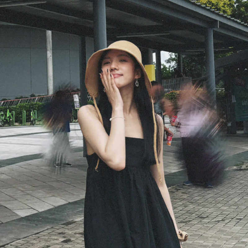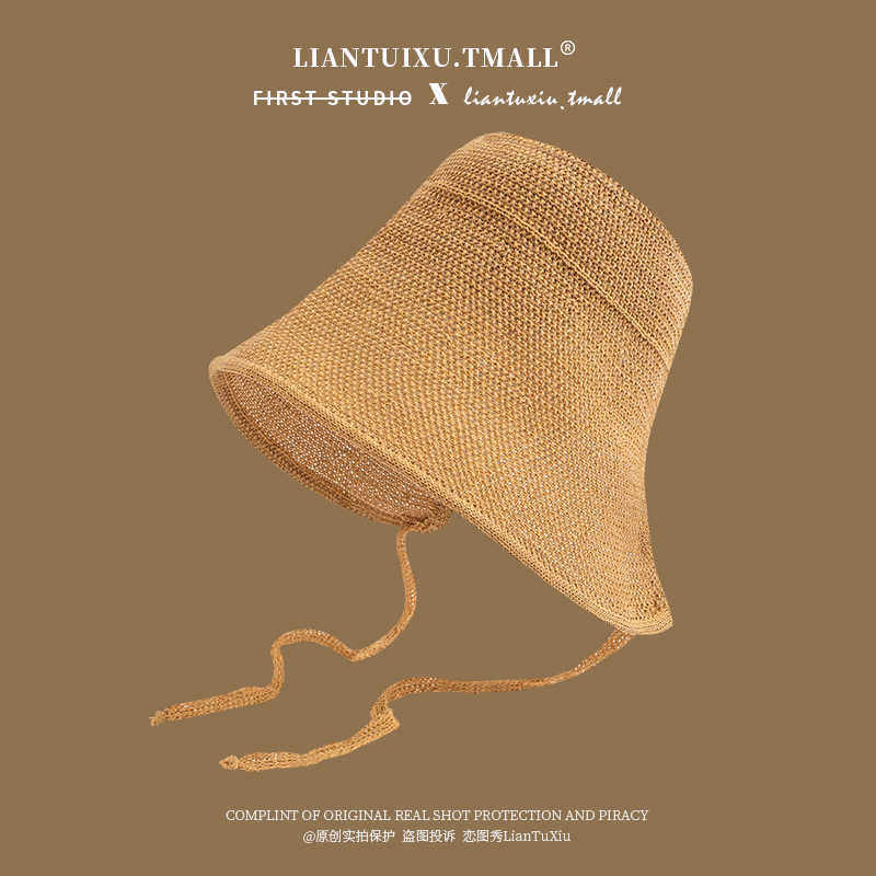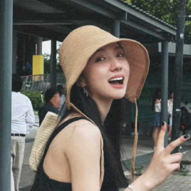 夏季海边系带草帽子遮阳帽女防晒防紫外线沙滩帽大帽檐凉帽渔夫帽