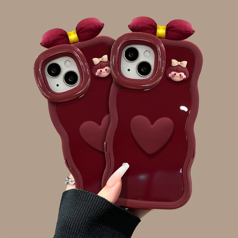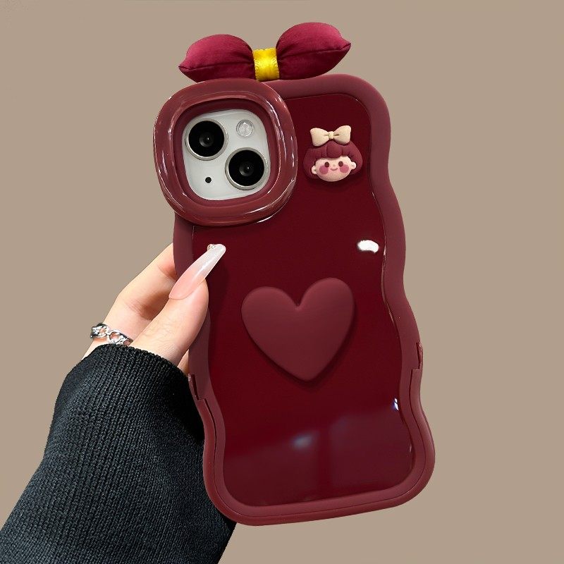 板凳双支架酒红色爱心女孩适用苹果17PROMAX手机壳air蝴蝶结iphone16新款苹果15PRO女iphone14/13/12/11全包