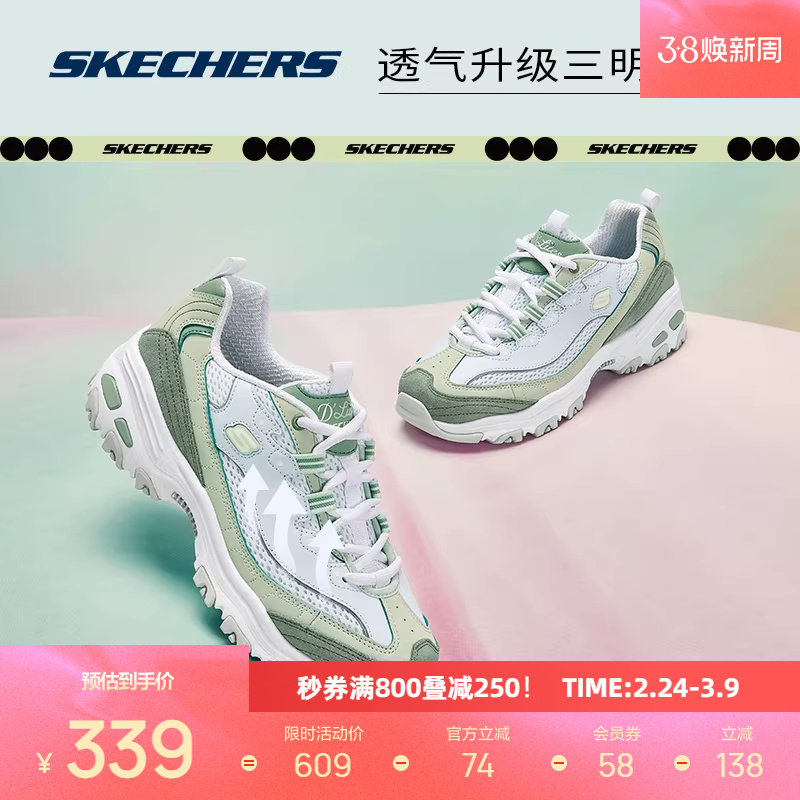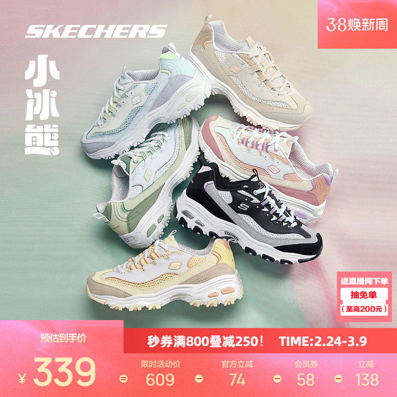 斯凯奇小冰熊老爹鞋女鞋厚底增高熊猫鞋运动鞋透气休闲低帮鞋官方