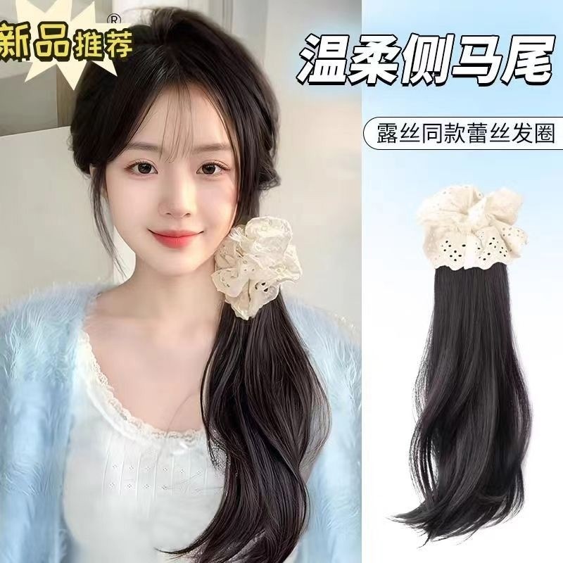 马尾假发女自然蓬松韩系低扎侧马尾蕾丝发圈长卷发抓夹马尾