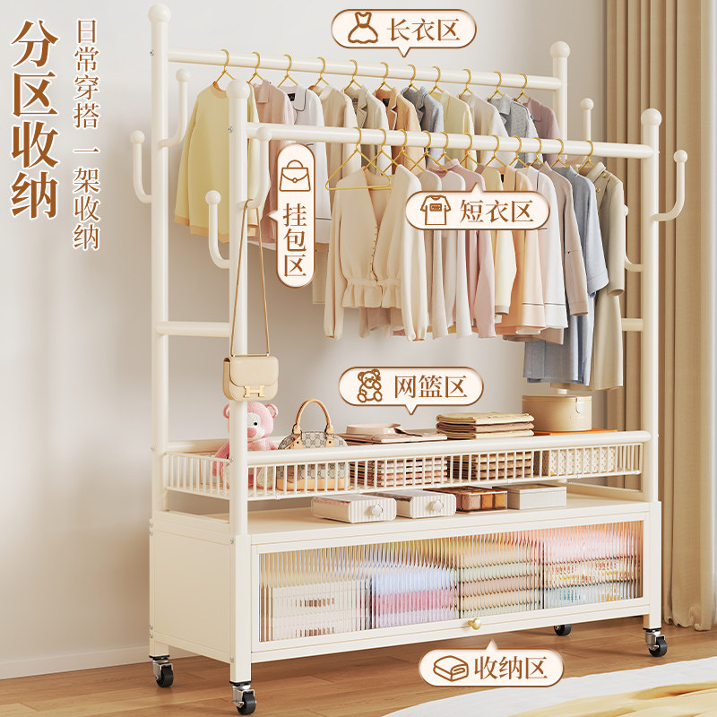 挂衣架落地家用多功能卧室房间置物衣帽架可移动室内晒晾衣服架子