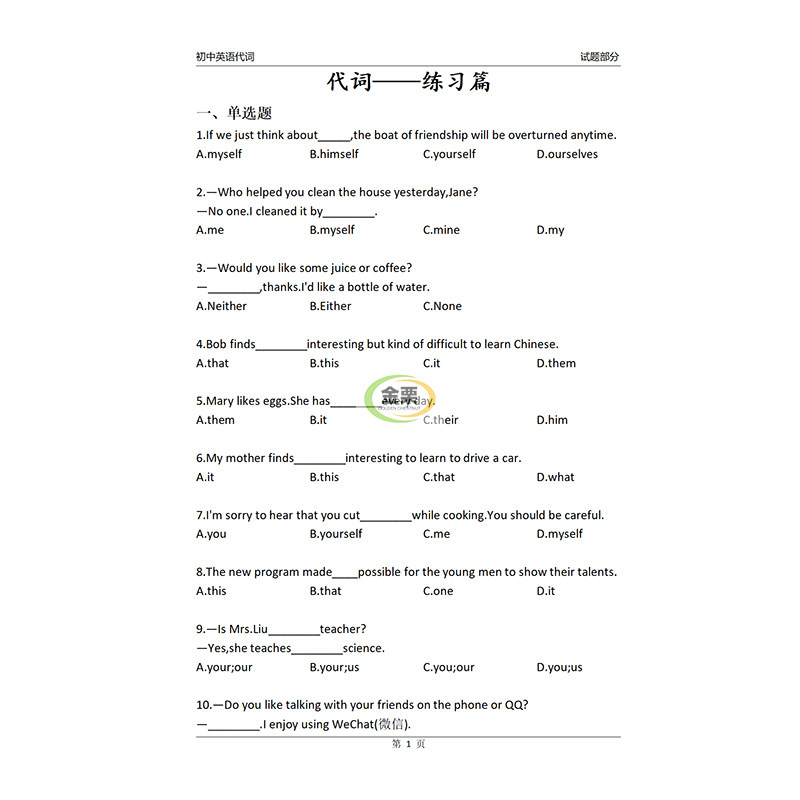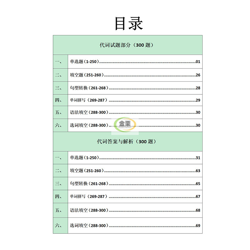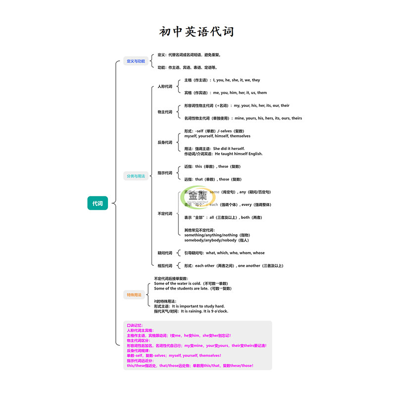 初中英语代词专项练习册含思维导图解析300题初中中考通用
