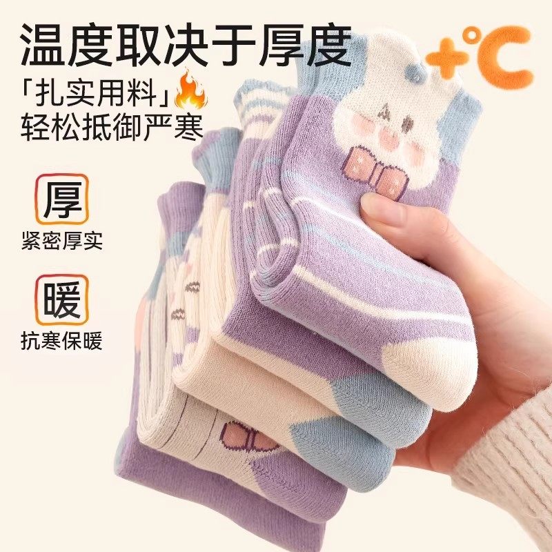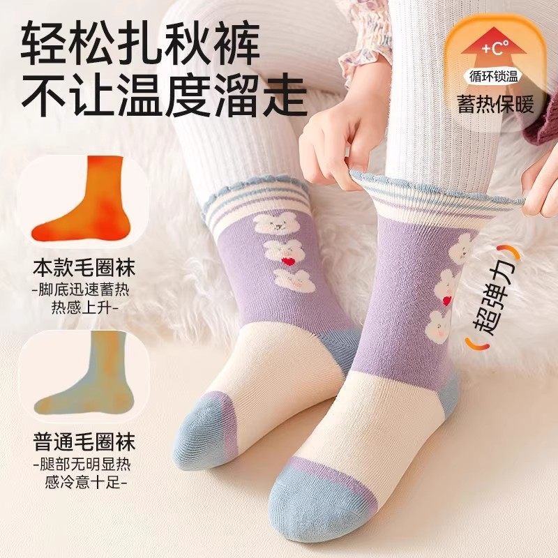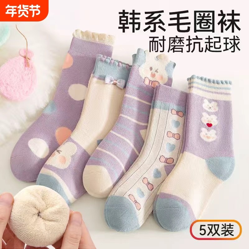 女童袜子秋冬款加厚加绒儿童毛圈袜纯棉宝宝棉袜冬季保暖童袜中筒