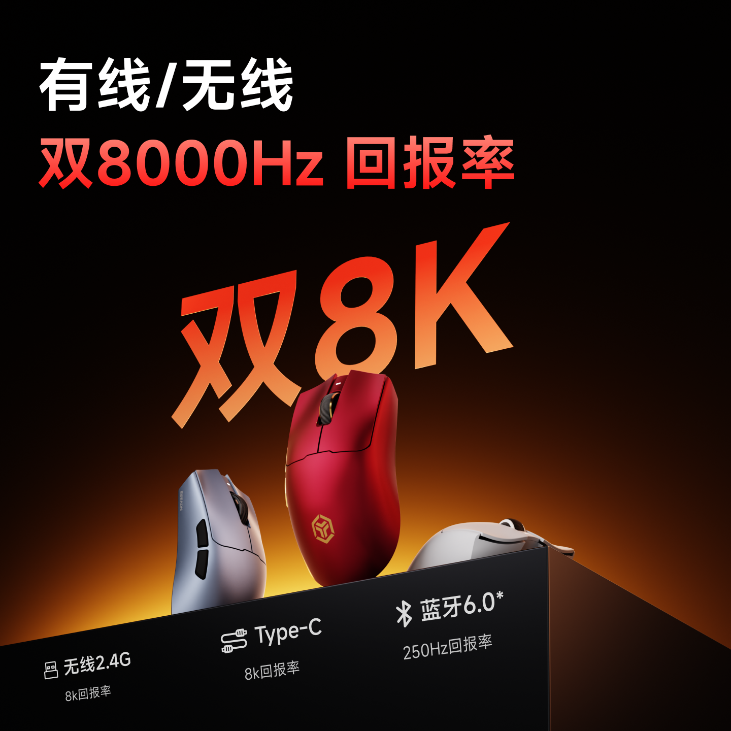 瓦尔基里VK M3有线/2.4G/蓝牙三模电竞鼠标8K无线接收器40g轻量化