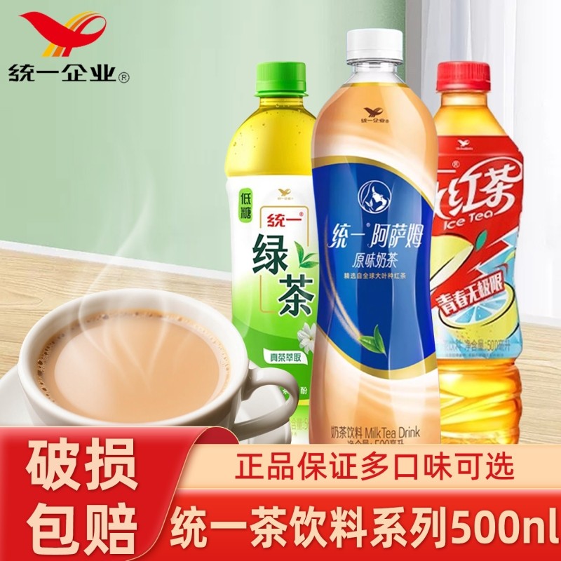 统一阿萨姆原味奶茶500ml经典绿茶冰红茶饮料批发凉茶茶萃茉莉