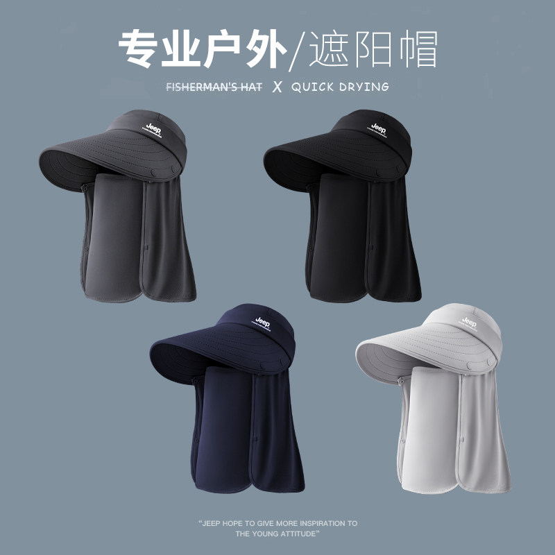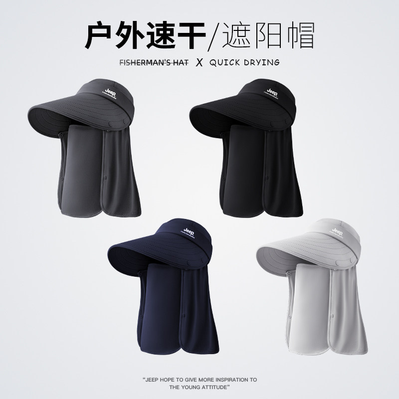 jeep吉普冰丝防晒帽夏季防紫外线太阳帽女遮阳遮脸面罩骑车帽子男