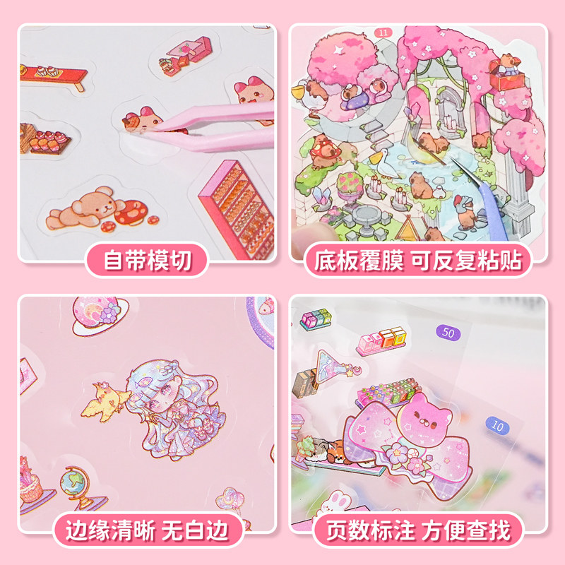 萌崽新款学霸学渣果冻贴纸安静书儿童免裁剪手工粘贴DIY女孩趣味玩具