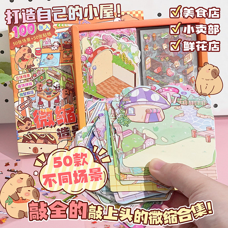 新款筑梦3d立体造景贴纸微缩场景合集本 大号版diy手工小屋手账贴儿童益智玩具素材贴画解压大版3D手账装饰贴