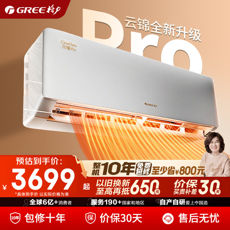 【官方自营】格力空调1.5匹云锦pro一级能效变频挂机政府补贴109