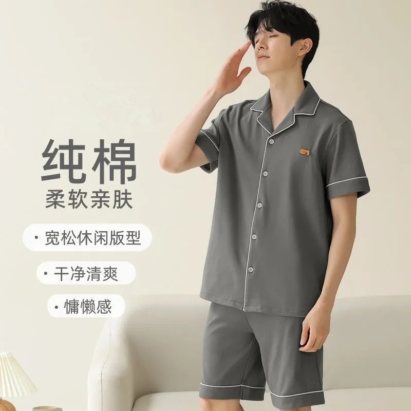 男士睡衣夏季纯棉短袖薄款2025新款夏天家居服套装可外穿开衫亲肤