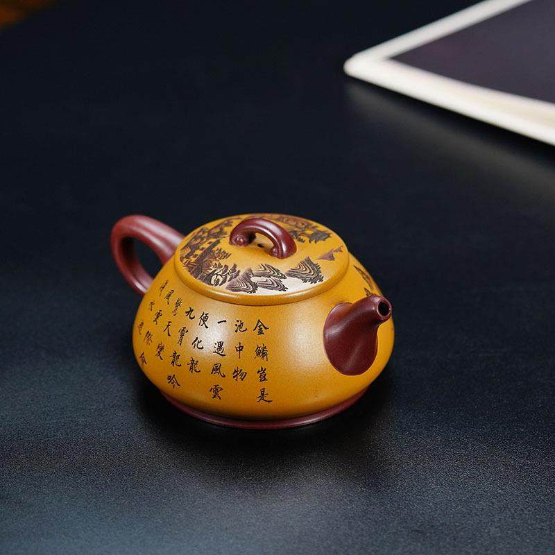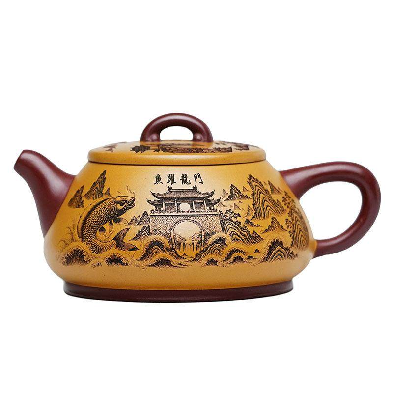 宜兴紫砂壶原矿龙血砂鱼跃龙门壶纳瓢名家手制茶壶茶具